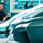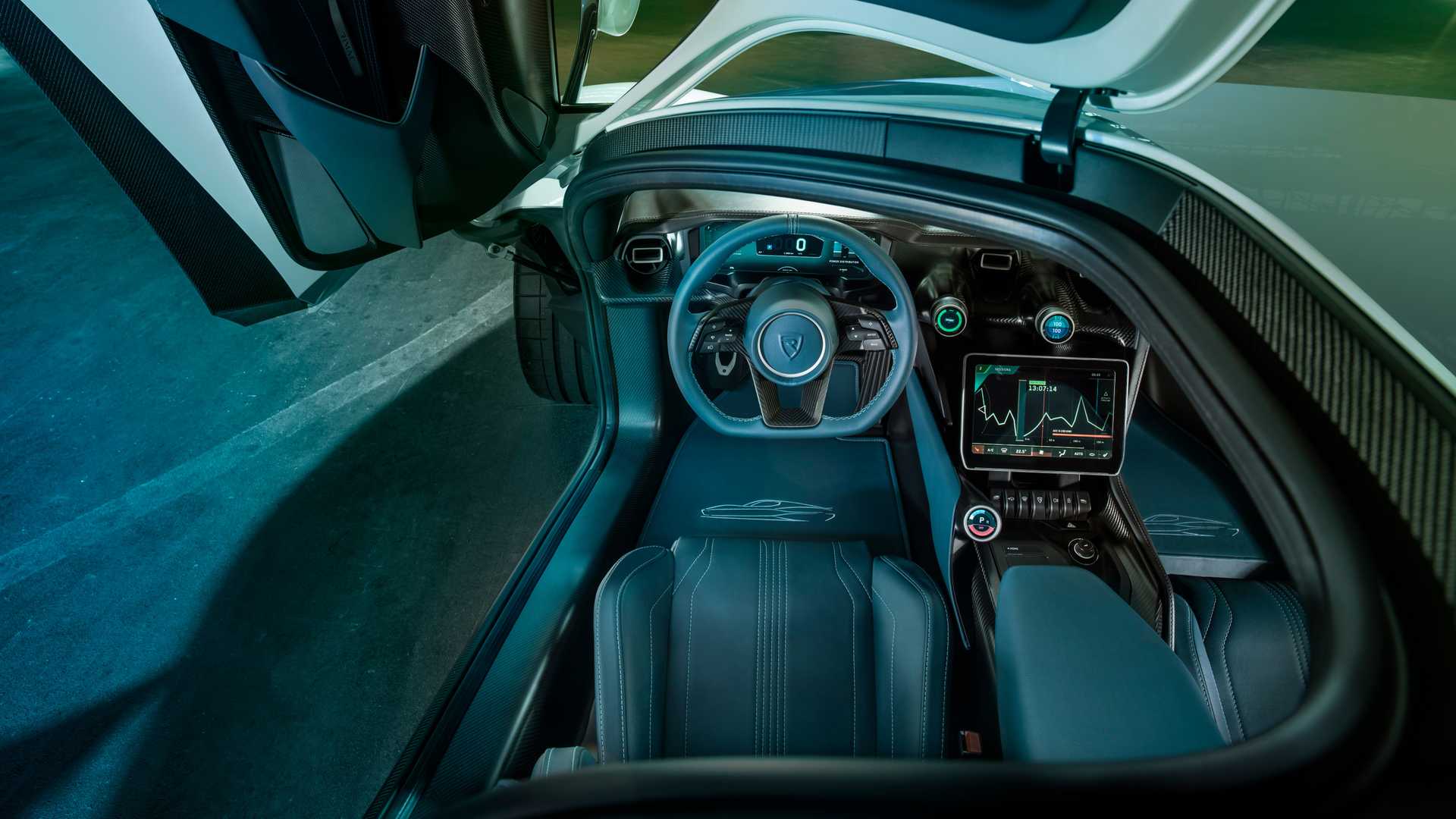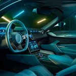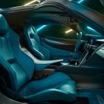 Kabina je takođe fascinantna, zahvaljujući temi u vidu mat ugljeničnih vlakana u kombinaciji s „petrolej“ plavom kožom na sedištima, tapacirungu vrata, volanu, centralnom naslonu za ruku, pa čak i patosnicama.