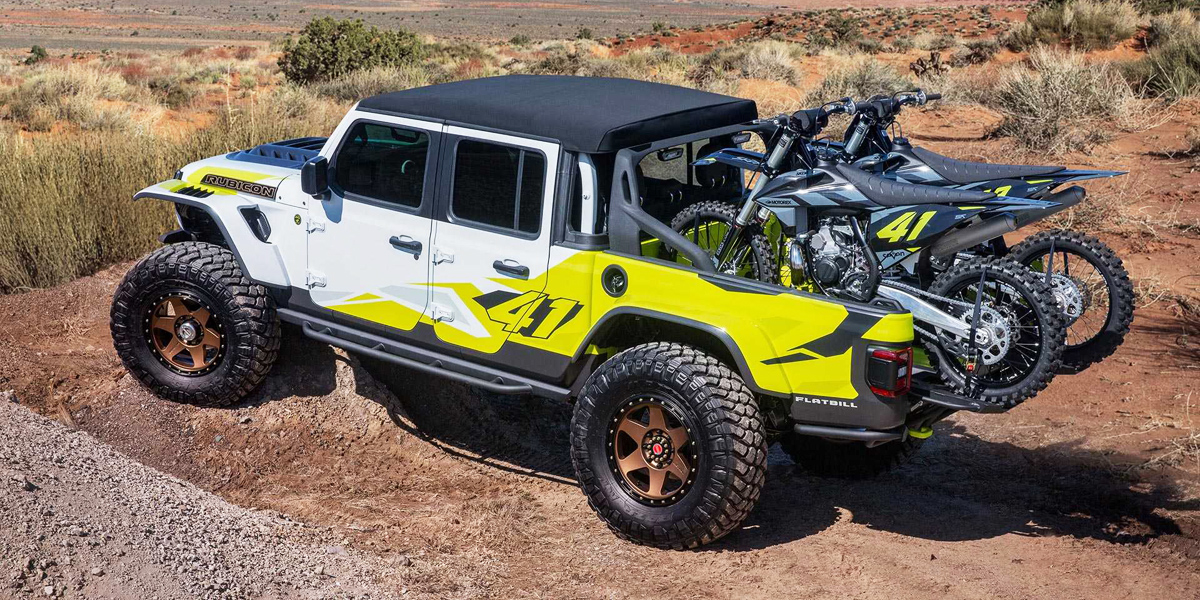 Naposletku, Jeep Gladiator Flatbill je dizajniran za krstarenje pustinjskim predelima. Klirens je podignut za 10 centimetara, gume poseduju prečnik od 40 inča, a preoblikovani su i odbojnici kako bi se obezbedila geometrija podesna za savladavanje peščanih dina.