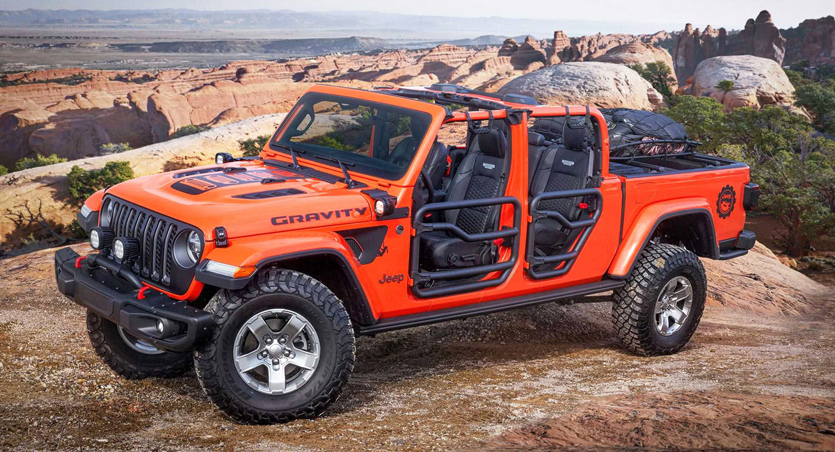 Koncept Jeep Gladiator Gravity je osmišljen kako bi lakše savladavao stenovite terene i vožnju po “drumovima” popločanim krupnim komadima kamena. Odsustvo vrata, definisanih u tradicionalnom smislu, olakšava praćenje pozicije točkova u veoma negostoljubivom okruženju.