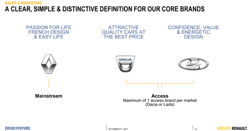 Bilo kako bilo, sudbina marke Lada je već duže vreme veoma neizvesna na tržištu Evropske unije. U sklopu plana koji je Karlos Gon obelodanio krajem 2017. godine, a koji je Renault grupa nazvala Upravljanje budućnošću (Drive the Future), prikazana je gornja ilustracija.