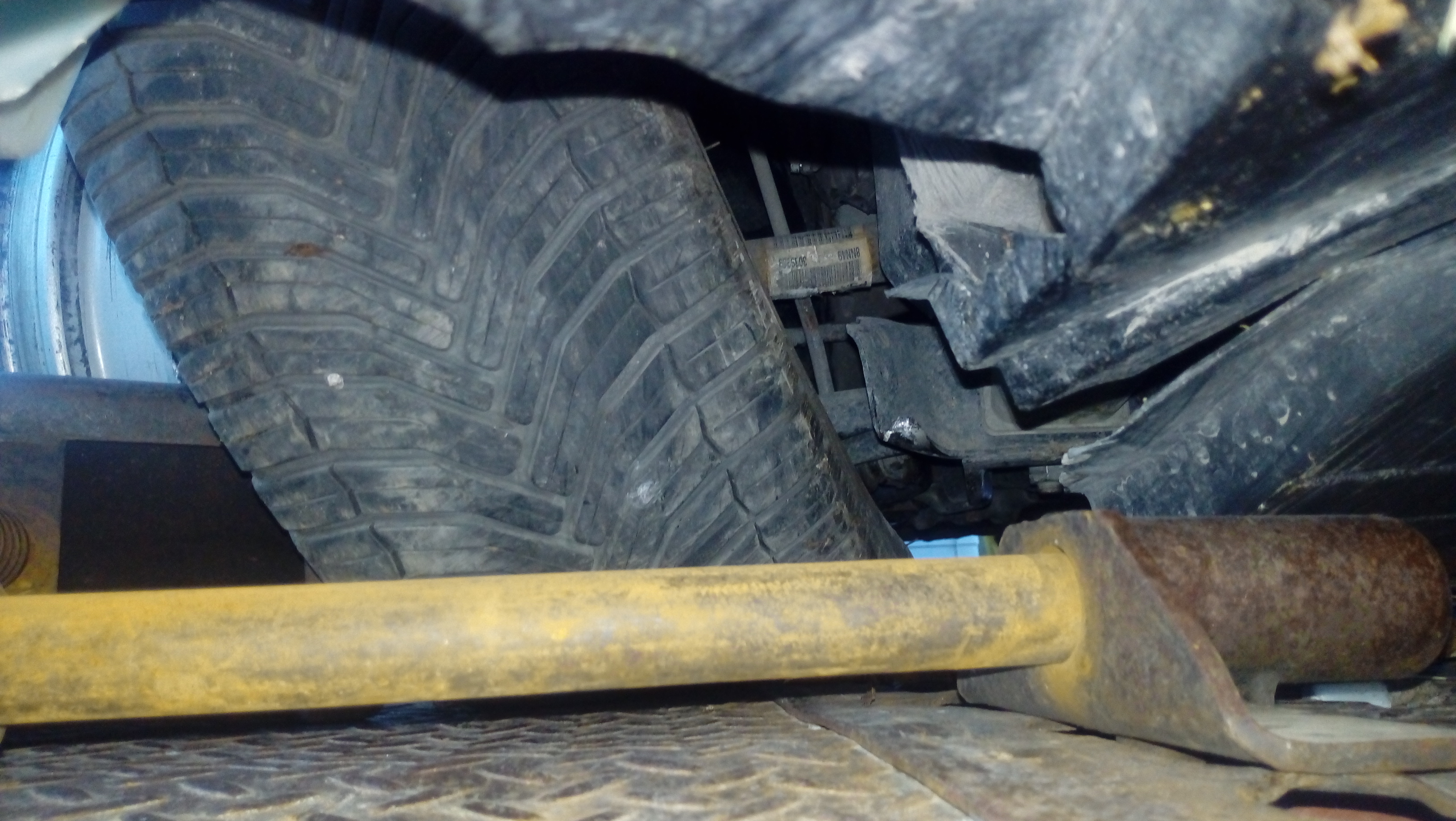 „Izvalih“ prednji desni točak. Izmedju ostalog. Zanemarujući polupane razne plastike ( branik, šuspleh, potkrilo, maglenku, posudu tečnosti za pranje svetala i vetrobrana … ), polomio sam aluminijumsku felnu i pocepao gumu, iskrivio desno „rame“, kraj spone, produžetak kraja spone, a prvi kamen je pokidao sajlu ručne, oštetio zadnji desni silen blok …