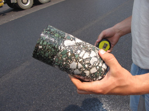 Na slici je prikazan kern iz asfaltnih slojeva. Jasno možete da vidite prvi sloj od eruptivnog asfalta i drugi od krečnjaka
