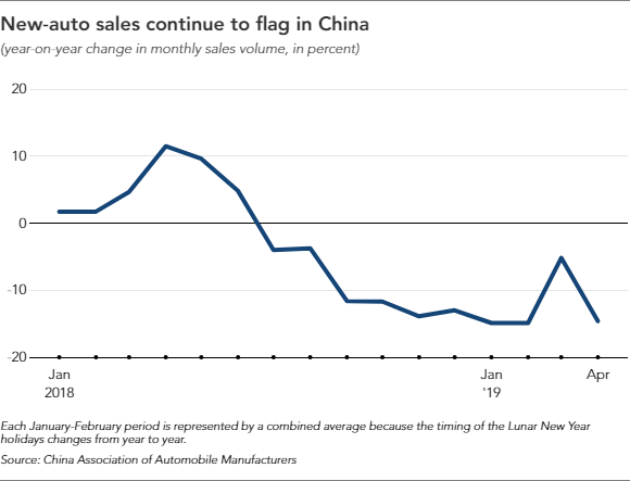 Vlada najmnogoljudnije zemlje na svetu traga za novim načinima kako bi se podstakao oporavak posrnulog automobilskog tržišta. Tražnja je u padu mesecima unazad, a jedan od vitalnih delova ekonomije vidno pati paralelno sa rasplamsavanjem trgovinskih tenzija sa Amerikom.