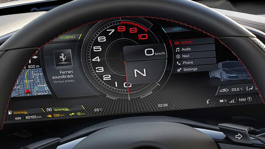 Konjica dolazi iz 4,0-litarskog V8 turbo motora koji proizvodi 780 ks i 800 Nm. To ga čini najmoćnijim Ferrarijevim V8 do sada. Međutim, tu su sada i tri elektromotora napajanih litijum-jonskim baterijama, gde je jedan lociran na zadnjoj osovini a dva napred. Oni dodaju još 220 konja u „jednačninu“, tako da krajnji zbir iznosi 1.000 konja.