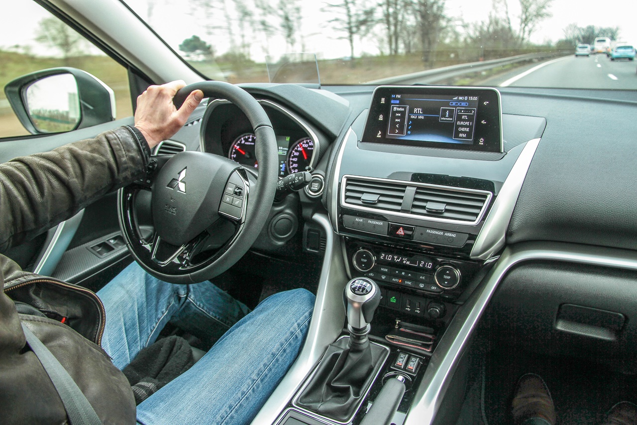S druge strane, praktični aspekt je za svaku pohvalu, brojne pregrade i boksovi, velike zapremine, olakšavaju svakodnevnicu. Pozadi, na zadnjim sedištima, sledi prijatno iznenađenje. Sa samo 4,4 metara Eclipse nudi putnicima retko izdašan prostor za kolena (osetno prostraniji od 3008), uz podešavajući nagib naslona. Klupa je podeljena na dve trećine i oba dela su smeštena na klizačima, s amplitudom pomeranja od dobrih dvadesetak santimetara. U voženom primerku putnici imaju pravo i na parče neba (dvostruki panoramski krov s električnom komandom), kao i grejače na sedištima i dvojnu USB konekciju.