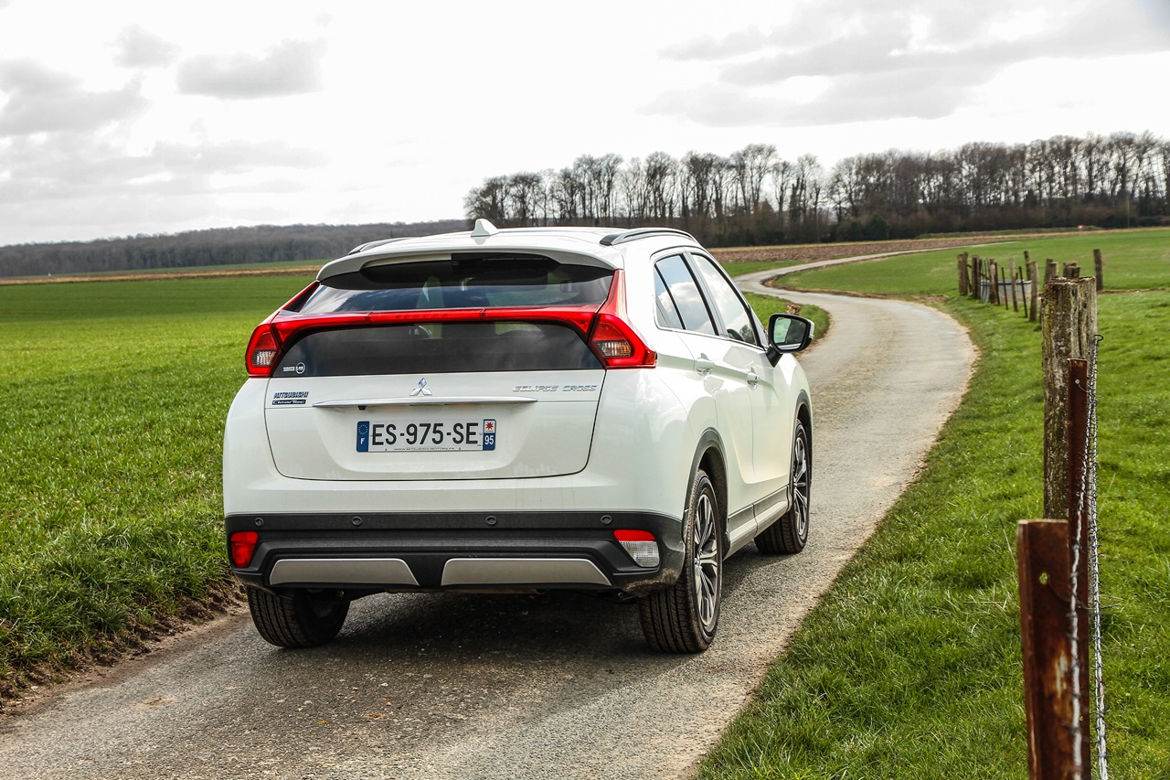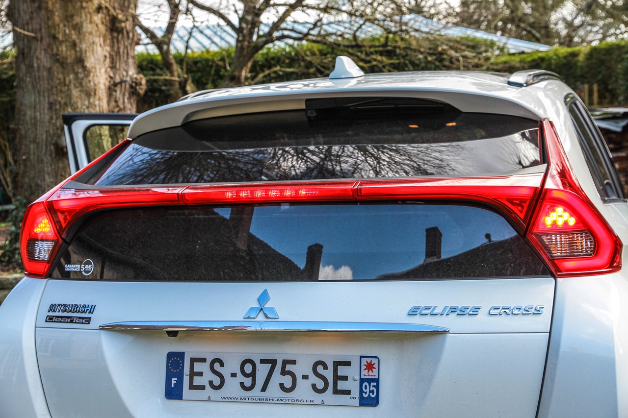 Ukoliko je verovati proizvođaču, dizajneri su bili inspirisani čuvenim kupeom Eclipse (prodat u 1,4 miliona primeraka između 1990 i 2012.), malo poznatim u Evropi. Neka im bude, no ja obrise kupea u ovom SUV vidim samo u snažno podsečenom zadnjem delu, s dvostrukim staklom. Naime, peta vrata po sredini su „presečena“ velikom svetlosnom grupom, nalik na spojler, što će jedni smatrati atraktivnim detaljem, a drugi čistim kičem! Stvar ukusa, presudite sami, no činjenica je da sjaji kao božićna jelka kada se pritisne kočnica.
