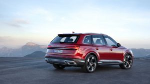 Nazad, vidna je obilna upotreba hromiranih detalja a najupečatljiviji se odnosi na traku koja povezuje levo i desno stop svetlo. Iako osveženi krosover leži na identičnoj arhitekturi, novi Q7 je 11 milimetara duži od verzije pre restilizacije, pa se tako prostire na 5.063 milimetara. Logično je da je isti broj milimetara ostao da deli prednju i zadnju osovinu (2.994).