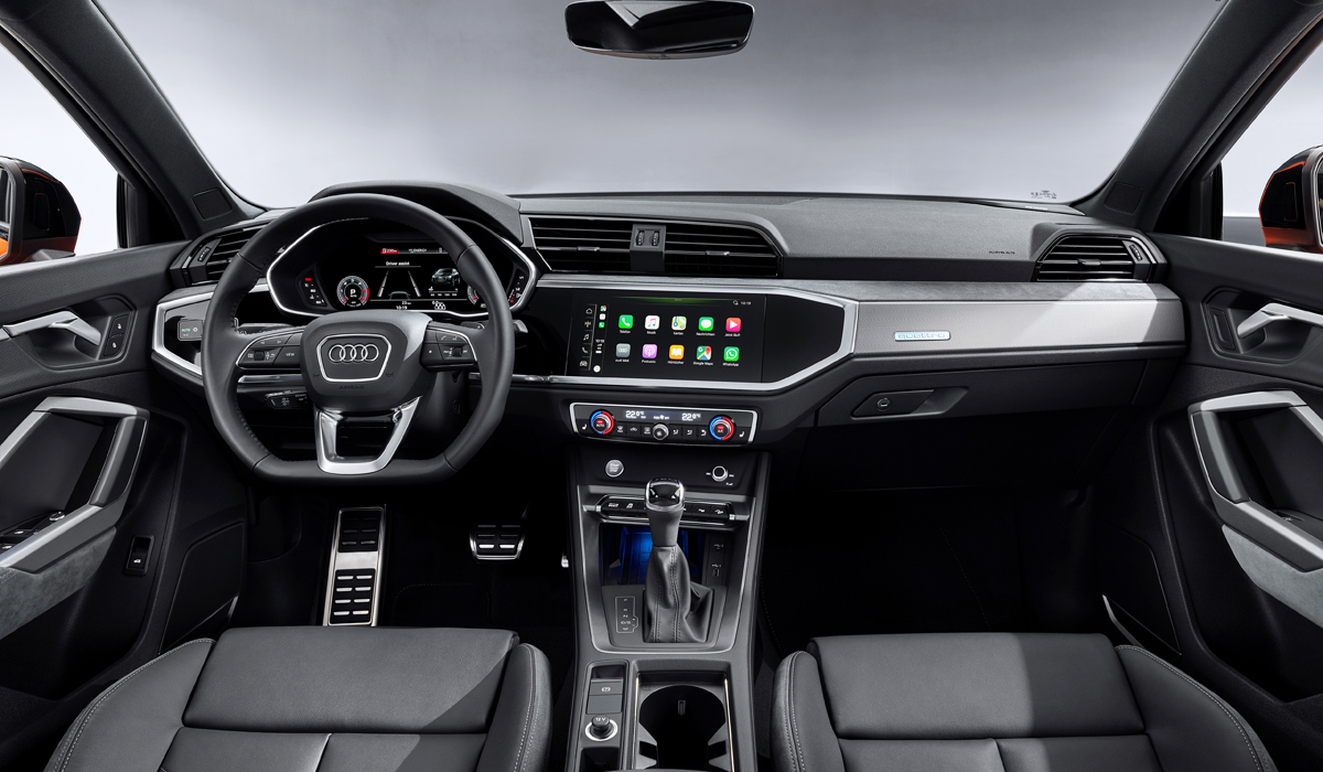 Izgled i koncepcija putničke kabine se nisu menjali u odnosu na izvorni Audi Q3. Dakle, osnovnom verzijom dominira ekran osetljiv na dodir dijagonale 10,25 inča, dok virtuelni kokpit pune veličine leži na 12,3 inča po dijagonali. Za njega vlasnik mora da zavuče ruku u džep još dublje. Multimedijalni sistem koristi displej dijagonale 8,8 ili 10,1 inča, zavisno od toga koliko opet kupac želi da odvoji novca za ugođaj, a tu su i funkcije glasovne kontrole, bežičnog prenosa podataka, mogućnost daljinskog pristupa vozilu putem aplikacije za pametne telefone.