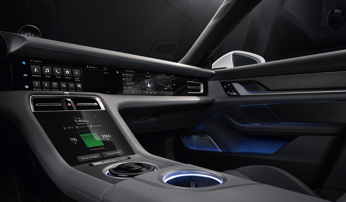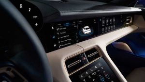 Info-zabavni sistem poseduje opciju glasovne kontrole,koja može biti aktivirana na “vrlo kreativan način”, odnosno tihim povikom “Hey Porsche”. Na centralnoj konzoli je pozicioniran još jedan ekran, a ovaj poseduje dijagonalu od 8,4 inča. On je osetljiv na dodir prilikom kojeg uzvraća vibracijom. Praćenjem sadržaja koji se emituje na ovom “platnu”, vozač se upoznaje s postavkama i upravlja radom sistema za klimatizaciju.