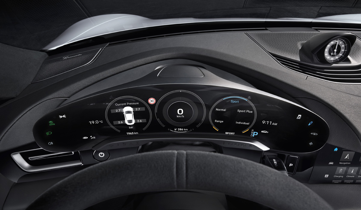 U enterijeru se mogu videti “manje-više” sva tradicionalna obeležja Porscheovih automobila, ali je isto tako primetno da analogni tasteri skoro i da ne mogu biti pronađeni u kabini. Ispred vozača je poziciona ekran koji po dijagonali poseduje 16,8 nča, a nudi četiri različita režima prikaza.