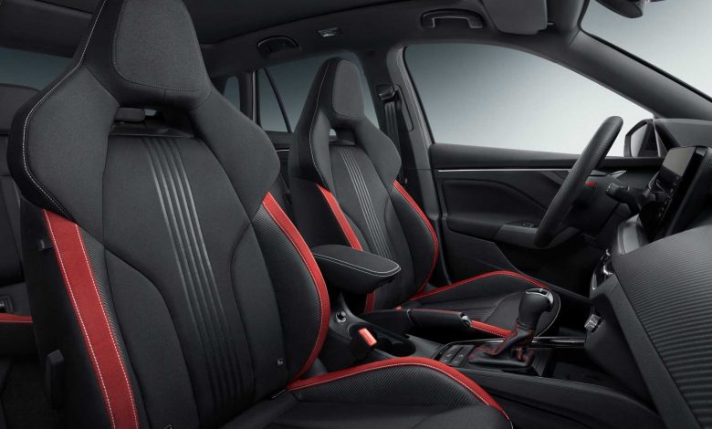 Unutar vozila Škoda je upotrebila značajno kvalitetnije materijale. Poseban šmek celoj kabini daje dominantna crna boja, dok se upotrebom crvenog konca stvara neophodan kontrast. Koža je našla svoju primenu na volanu, ručici menjača, ali i rukohvatu ručne kočnice. Razlika u odnosu na standardni model jesu i prednja sportska sedišta.