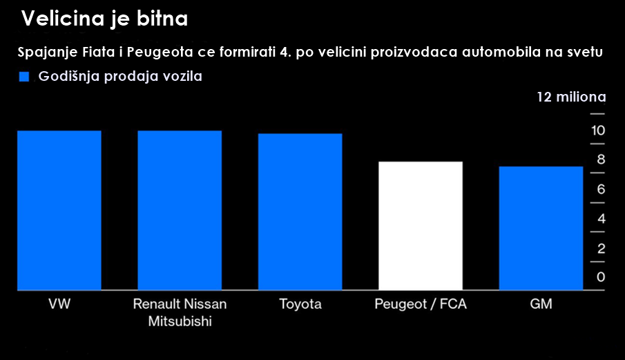 Spajanje PSA grupe i Fiat Chrysler Automobilesa, najveća je transakcija između dva proizvođača automobila, još od preuzimanja Chryslera od strane Daimlera pre dve decenije.