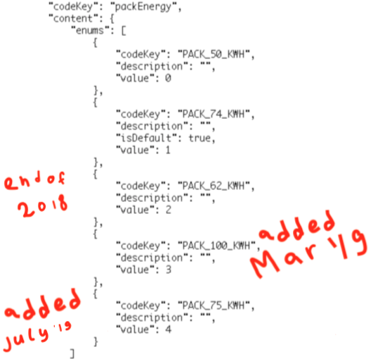 Korisnik Twittera, @greentheonly, koji je takođe vlasnik Tesle i ujedno dobar programer, spomenuo je da je reč o „za sada nepotvrđenim spekulacijama“ baziranim na nekoliko linija koda kompjutera Modela 3. Izvor je tekstualni fajl s vrednostima konfiguracije. Delovi koji su najbitniji za ovu priču se mogu videti na priloženoj fotografiji, koja potvrđuje da je reč o bateriji od 100 kWh.