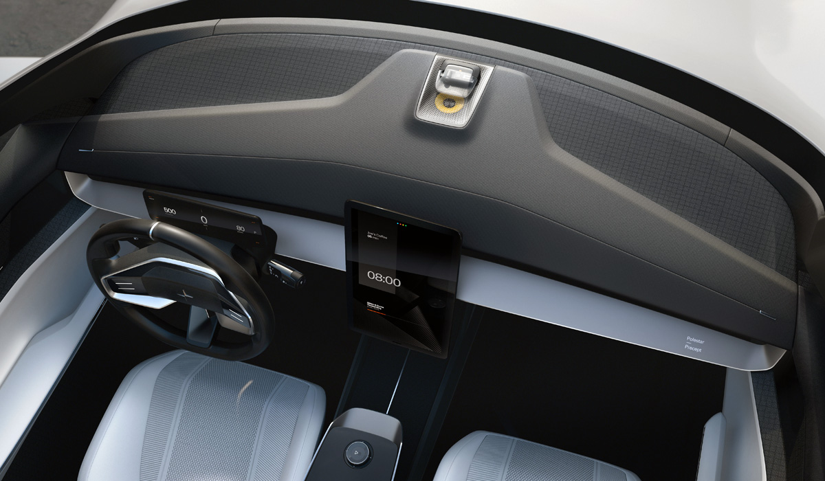 Polestar Precept ne poseduje zadnje vetrobransko staklo pa je zato montaža širokougaone kamere na vrhu zadnjeg segmenta krova bila praktično neizbežna. Video zapis koji sačine kamere, prenosi se na centralnom ekranu.