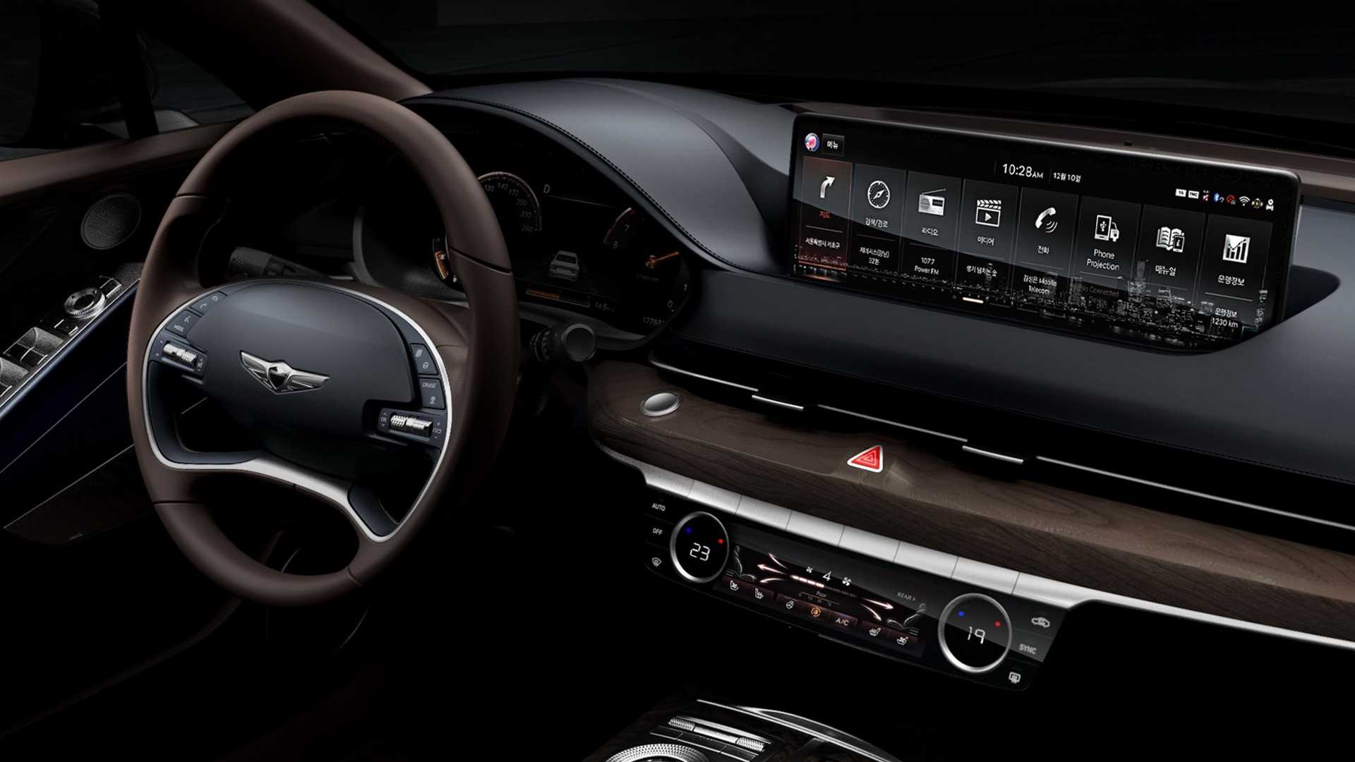 Unutrašnjost novog sedana G80 donosi mnoštvo detalja viđenih u bratskom SUV-u GV80, ali uz jedinstveni duh koji krasi novitet. Dakle, iako nalik na implementirano kod modela s povišenom pozicijom sedenja, na G80 je sve pobrojano, zapravo unikatno: instrumentaciona tabla, centralni greben, obruč upravljača i unutrašnji paneli na vratima.