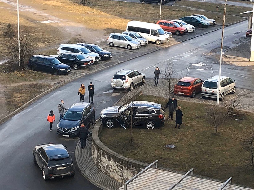 “Žena je neočekivano, džipom nagrnula preko ivičnjaka, na travnjak, pa pravo na mlado drvo, sve do betonske ograde koja se od udarca sručila na Renault parkiran ispod zidića,” napisao je beloruskim novinarima očevidac događaja, izvesni gospodin Aleks. “Gospođa je pokušala da “zapali”, ali se predomislila i ostala. Ubrzo se njena rodbina sjatila oko nje. Sve su to bili ljudi u skupim automobilima sa atraktivnim brojevima tablice. Niko od njih nije želeo da pozove policiju, ali je to ipak učinio neko od svedoka incidenta”.