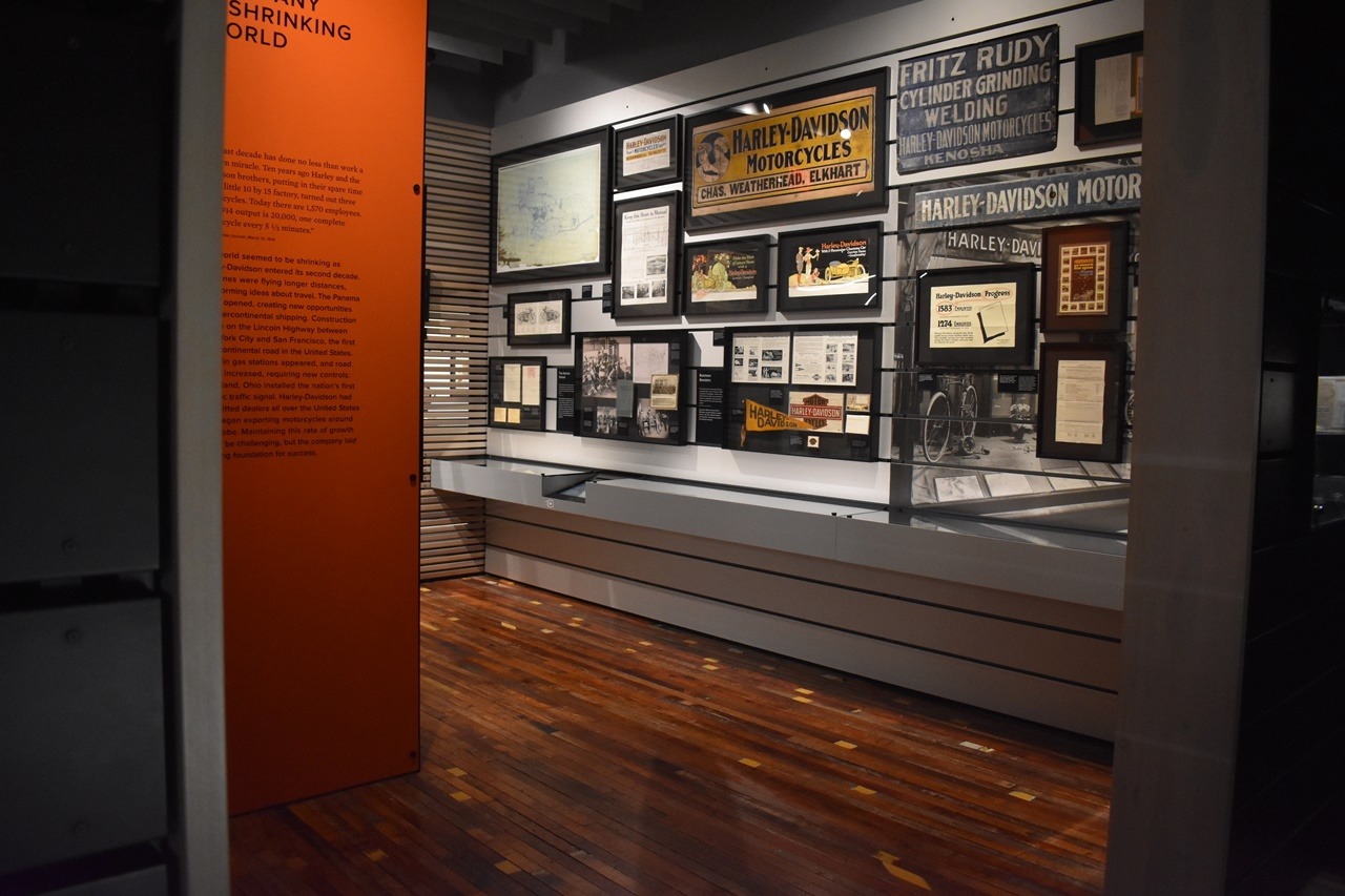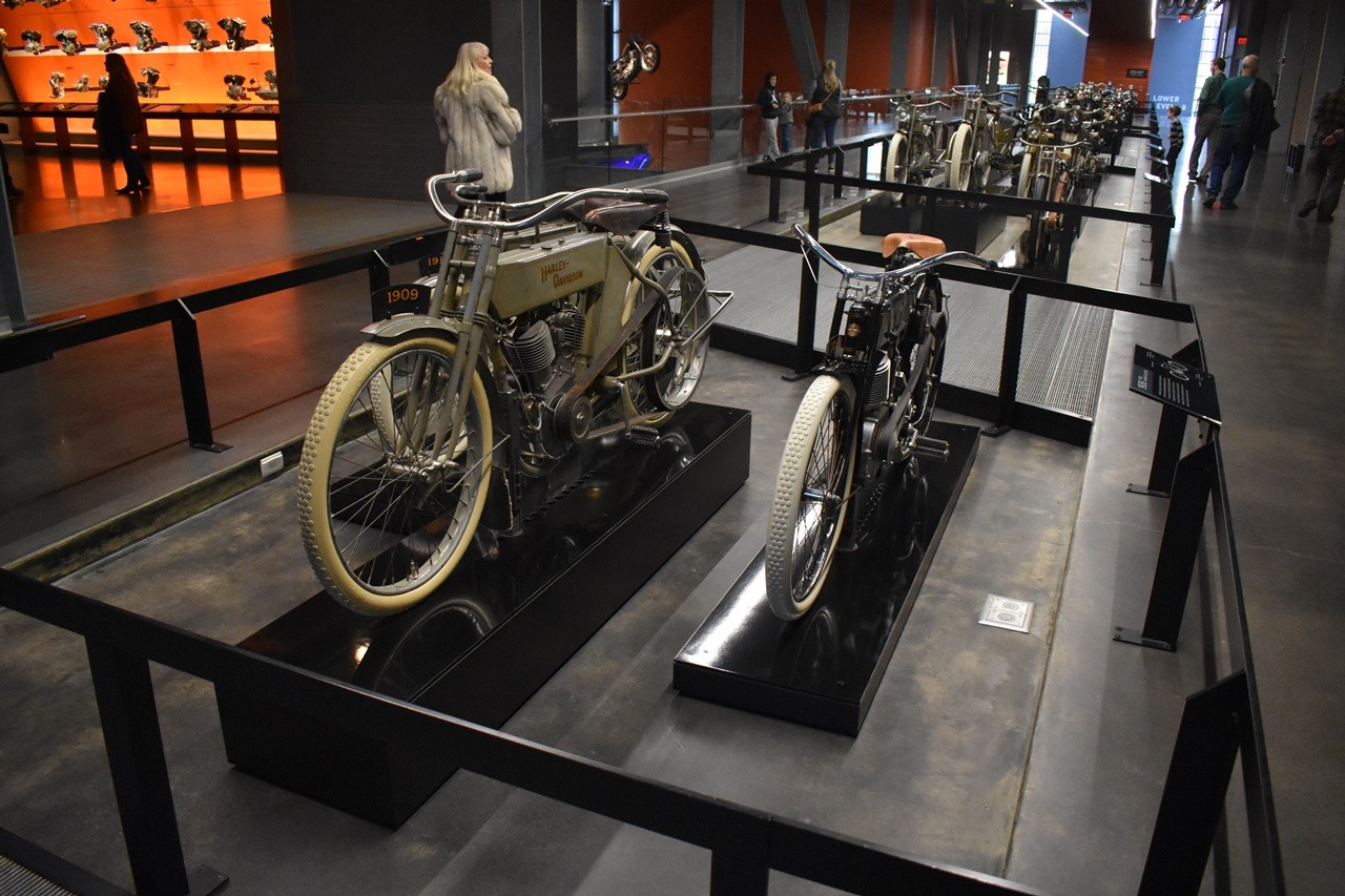 Harley Davidson je stekao slavu tokom Prvog svetskog rata kada je za potrebe vojske isporučeno 50.000 jedinica. Motocikli su se pokazali izuzetno pouzdanim i jeftinim za održavanje, a kako to obično biva u posleratnom periodu nekadašnji vojnici su želeli takve modele i za civilnu upotrebu. Do 1920. godine, Harley Davidson je postao najveći proizvođač motocikala na svetu, a veliki broj primeraka u muzeju je iz perioda pre Drugog svetskog rata. U spomenutom periodu, Harley Davidson je vodio veliku bitku na stazama sa još jednim velikim američkim proizvođačem – Indian Chief Motorcycles, kako na stazama tako i među privatnim kupcima.