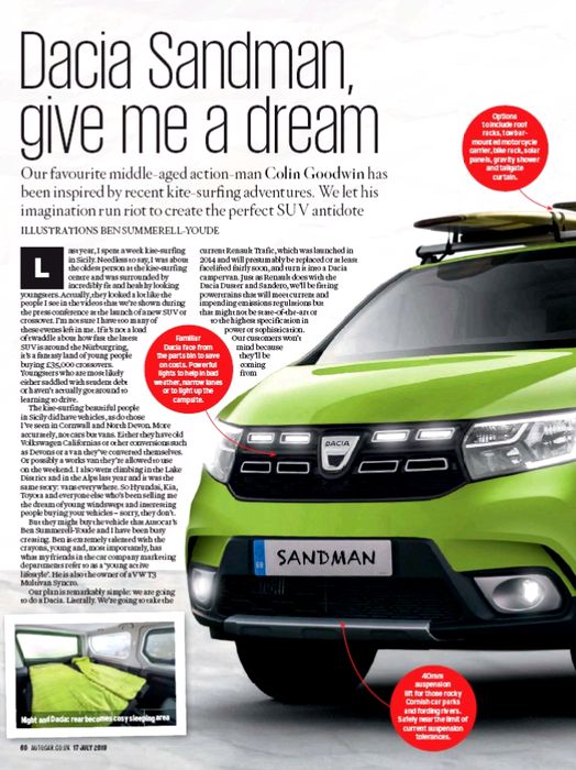 Poznato je da Rumuni nemaju takav model u gami, pa su „render majstori“ upriličili ilustraciju minivana utemeljenog na modelu Renault Traffic uz korekciju naniže, u pogledu međuosovinskog rastojanja. „Novitet“ je nazvan Dacia Sandman.