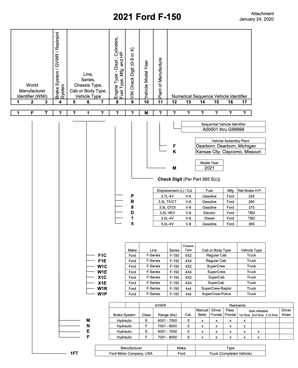 Fotografija VIN broja takođe pokazuje da će u ponudi i dalje biti dva atmosferska benzinca (3,3 i 5,0 litara), dva turbo benzinca (2,7 i 3,5 litara) i jedan dizel (3,0 litara). U svim slučajevima menjač će verovatno biti desetostepeni automatik.