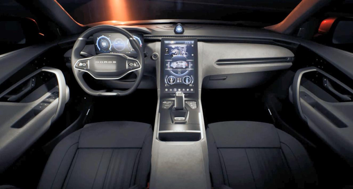 Unutrašnjost krosovera srednje veličine iz Kine, trenutno je prikazana jedino u vidu kompjuterske animacije i koliko vidimo, nema dodirnih tačaka s onim što je nekada karakterisalo kabinu Qorosa. Tu je obruč upravljača s dva kraka, tablet multimedijalnog sistema preko cele širine centralne konzole, virtuelna instrumentacija i fiksirana ručica menjača.