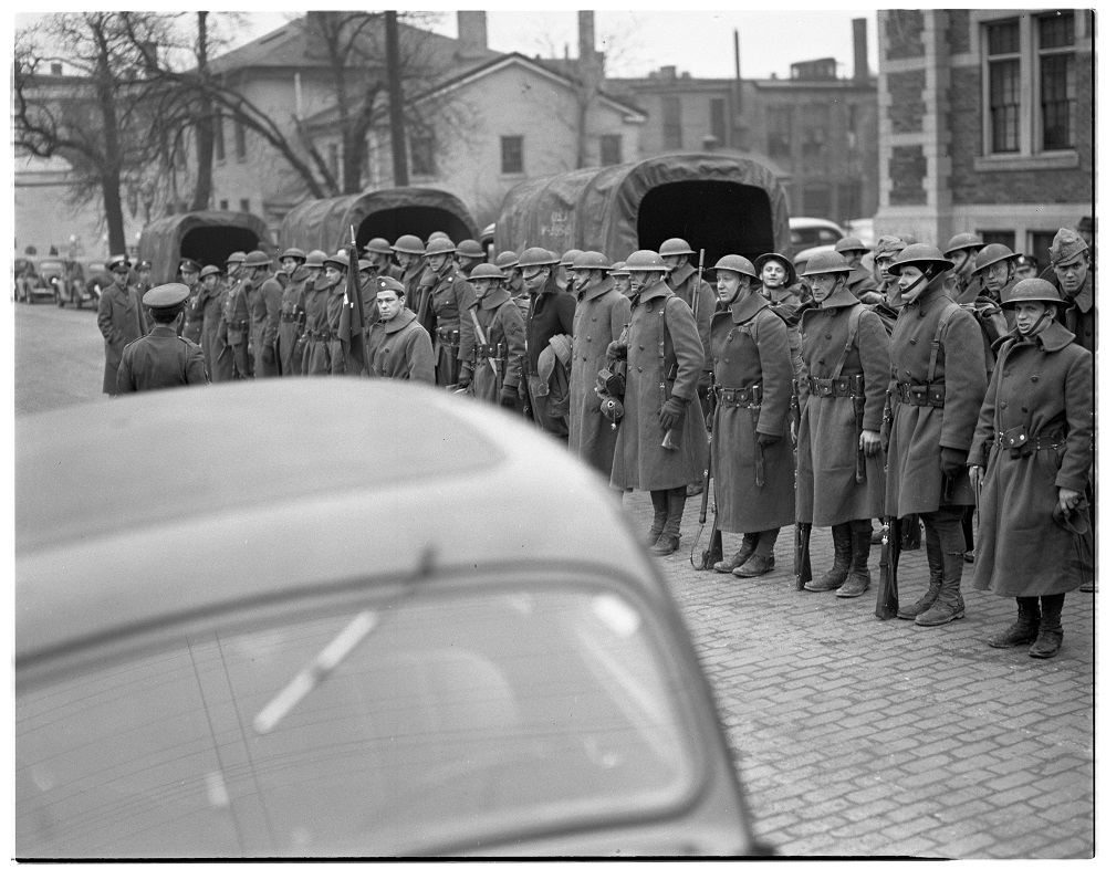 Lokalna policija je prvi put pokušala da uđe u zgradu 11. januara 1937. godine, a zaposleni su odgovorili bacanjem kamenica i praznih flaša. Policija je zatim otvorila vatru i povredila 14 radnika, ali nisu uspeli da se probiju na nekom od ulaza. Situacija je postala toliko opasna da je reagovao i američki potpredsednik Džon Garner, koji je čak želeo da pošalje vojsku da se obračuna sa radnicima, ali ovu ideju je odbio predsednik Frenklin Ruzevelt i savetovao GM-u da pronađe mirno rešenje.