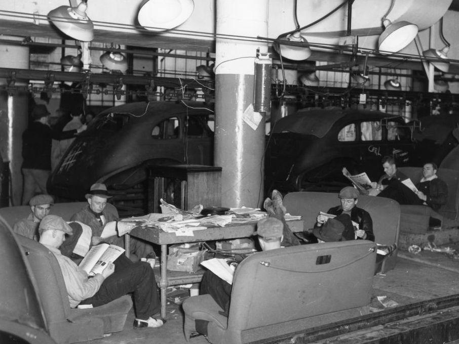 Prvi veći sindikat je osnovan 1930. godine i nosio je imao Unemployed Councils of the USA. Članovi tog sindikata su pokušali da demostriraju protiv Forda dve godine kasnije, ali su prošli izuzetno loše iz razloga što je organizacija bila slaba, pa nisu uspeli da zauzmu neku od fabrika već su protestvovali ispred. O ovome ste imali prilike da čitate u jednom od ranijih izdanja zanimljivosti dana.