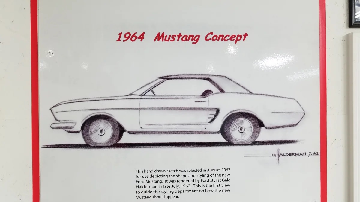 U jednom intervjuu, Halderman je rekao da je kompletirao pet crteža i da je jedan od njih (sa druge fotografije) izabran kao pobednik. Od tog momenta tim je imao generalnu ideju kako novi model mora da izgleda. To znači da iako Halderman nije samostalno osmislio izgled celokupnog Mustanga, njegov crtež je bio onaj koji je zaslužan za osnovu svakog budućeg stila. Zanimljiv je i podatak da je automobil pretrpeo čak 78 dizajnerskih izmena tokom tri godine razvoja.