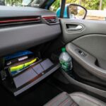 Ergonomija je bez zamerki, lično nalazim da mi Clio mnogo bolje „leži“ od Peugeota 208, čiji minijaturni upravljač i instrument tabla zahtevaju izvesno prilagođavanje. Nije se zaboravilo ni na praktične detalje, samim tim što je mehanička ručna kočnica zamenjena automatskom električnom, pronašlo se mesta za udubljenje za limenke. Stane nekako u vrata i ta moja test flaša od 1,5 litara (mora ipak malo da se zgnječi), dok je u dnu centralne konzole predviđeno mesto za bežično punjenje smartfona. Relativno skromne zapremine jedino je pregradak za rukavice ispred suvozača, no uprkos tome Renault navodi da je ukupni kapacitet svih boksova povećan na 26 litara (22 l kod Clia 4).
