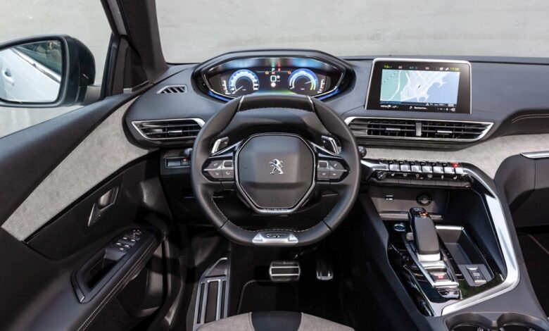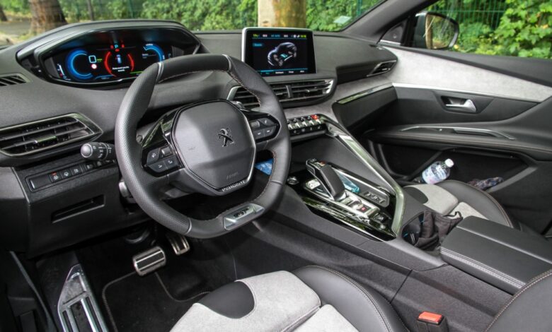 Poseban šarm ima minijaturni upravljač, podsečen na donjem i gornjem delu, s prečnikom manjim nego li kod jednog Ferarija. Preglednost instrumenata bolja je nego li kod 208 i 308, nema potrebe „podizati se na prste“ i spuštati upravljač u krilo, kako bi se videle kazaljke, koje uostalom to više ni nisu. Zbogom analogni instrumenti, njihovu funkciju preuzeo je ekran od 12,3 inča, s veoma zanimljivom i originalnom grafikom. Ima tu svega, od imitacije klasičnih instrumenata i personalizacije ekrana, pa sve do satelitske navigacije. Kod Hybrida je specifična, mesto rezervisano za obrtomer ustupljeneo je tkz. ekonometru i funkcijama vezanim za baterije.