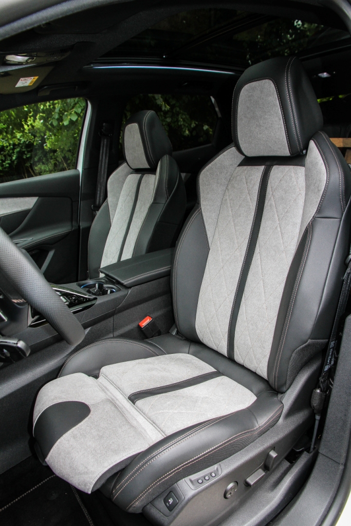Veoma dobroj ergonomiji svoj doprinos daju i prednja sedišta, koja, barem u našem slučaju (završni nivo GT Line), zaslužuju samo komplimente. Bez obzira da li su kompletno od kože, kombinaciji koža/alkantara ili platna, osim što su lepa na oko, udobna su i sa dobrim bočnim osloncima i masažom. Sedalni deo može se produžiti, tako da i „krakati“ vozači imaju dobar oslonac ispod kolena. Sa druge strane, kolega od preko 1,9 metara visine požalio se na centralni tunel, koji ga sprečava da opusti desnu nogu. Za desni lakat predviđen je oslonac u vidu ogromnog boksa (otvara se iz dva dela), dok ruka prirodno pada na ručicu automatskog menjača.