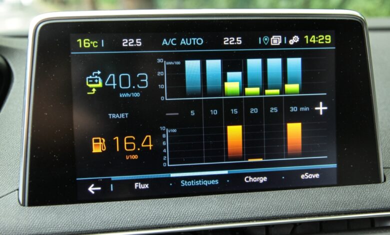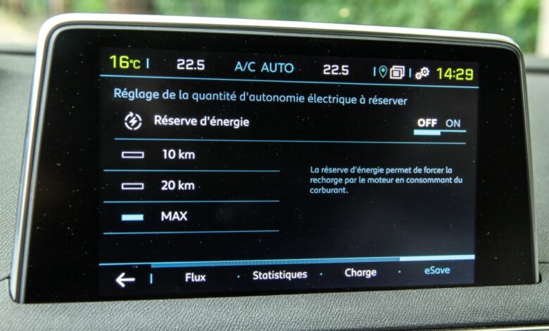 Kako bi maksimalno iskoristio električni pogon, ovaj 3008 startuje na struju, pod uslovom da u baterijama postoji dovoljno energije i da temperatura nije izuzetno niska. Napunjena do vrha u test vozilu, omogućila mi je da dobar deo puta od fabrike PSA (mestu poznato pod imenom Poissy) do kuće (preko 50 km), prevalim u električnom modu. Zapravo sve je stvar izbora, na središnjoj konzoli, pored ručice menjača, nalazi se taster „Drive mode“, kako bi vozač izabrao željeni program.