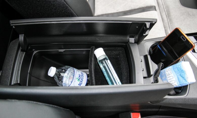 U navedni boks „ladno“ staje par flaša od 1,5 l, znatno više nego li u pregradak za rukavice ispred suvozača. Dno jednog i drugog, kao i police u vratima, postavljeno je materijom koja sprečava zveckanje i neprijatne vibracije, što samo dokazuje da je finalnoj obradi posvećena dužna pažnja. Podrazumeva se da je predviđeno i bežično, induktivno punjenje mobilnog telefona, nažalost uz doplatu čak i za ovaj završni nivo. Dovoljno je samo položiti ga u dno centralne konzole, obasjane prijatnom plavom svetlošću, pod uslovom da se radi o vrhunskom smartfonu. Moj nedavno kupljen Samsung a51 i dalje se puni preko USB utičnice, smeštene odmah pored. Led diode, iste boje, pronalazimo i po okviru panoramik krova, kao i pri dnu instrument table, na vratima, držačima za limenke…