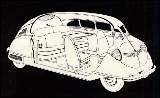 Jako interesantno! Kasnije je VW sa Multivan verzijama Transportera postigao slicnu stvar u pogledu svestranosti enterijera. No naravno ne moze se porediti u pogledu izgleda sa Scarabom koji kao da je izasao iz nekog Betmen filma.