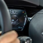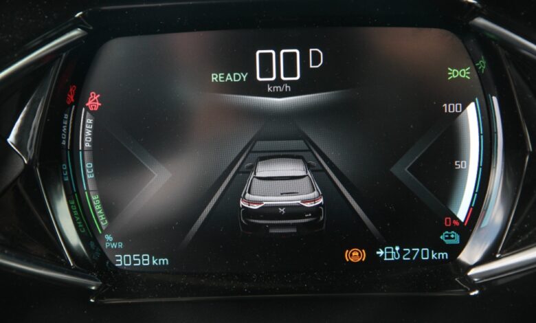 U istom stilu je i 100% digitalna instument tabla. Kao i kod DS7 može se personalizovati, odnosno promeniti grafika, no nekako mi upravo ona deluje najmanje prestižno, ekran je nedovoljno velik da bi impresionirao. Kod električne izvedbe je blago modifikovana, kako bi se ustupio prostor za ekonometar i displej u vezi stanja baterije. Sva sreća predviđen je veliki „head up“ displej, koji projektuje brojne informacije na parče providne plasike (po startovanju motora izroni iz komandne table).