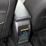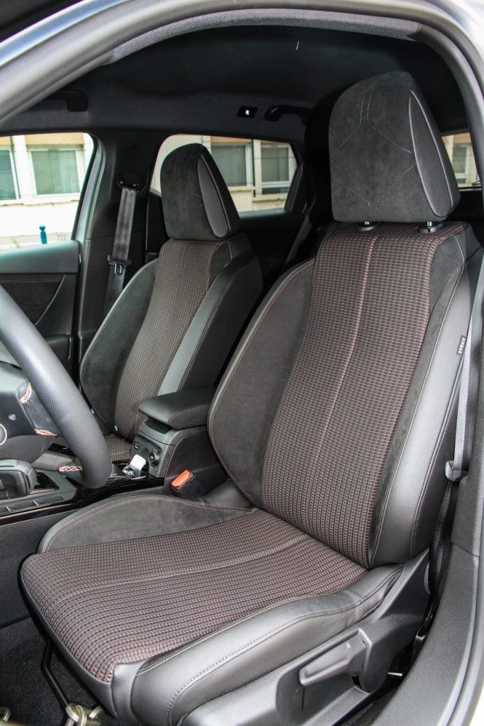 Originalne su i komande za električne podizače prozora, smeštene na konzoli između sedišta, s leve i desne strane ručice menjača. Prvih par dana leva ruka ih mahinalno traži na vratima, uostalom ovo i nije ekskluziva, i kod ostalih modela kuće su na istom mestu. Pozicija za upravljačem je bez zamerki, oba lakta imaju dobar oslonac. Ispod desnog je ujedno i boks solidne zapremine. U prednja vrata uspravno staju flaše od 1,5 litara, ali tada pokrivaju ručicu za otvaranje istih. Navedimo i plato za beskontaktno punjenje smarfona, kako to i priliči jednom pretendentu na premijum segment. E, tu se priča kvari, tvrda plastika na donjem delu centralne konzole odaje da se radi o vozilu iz nižeg segmenta.