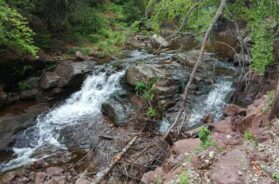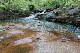 Duž puta su bili prelepi predeli Arbinja, stene, Dojkinačke reke koja u slapovima prelazi preko stena, samo to je lepo videti, par manjih vodopada su se videli kroz granje, par metara udaljeni od puta. Stižemo, i nabacujemo kišne kabanice, kiša rominja. Krećemo duž vlažne staze, kraj potoka, jer je voda skoro svugde oko nas, samo se sliva, i preseca stazu.