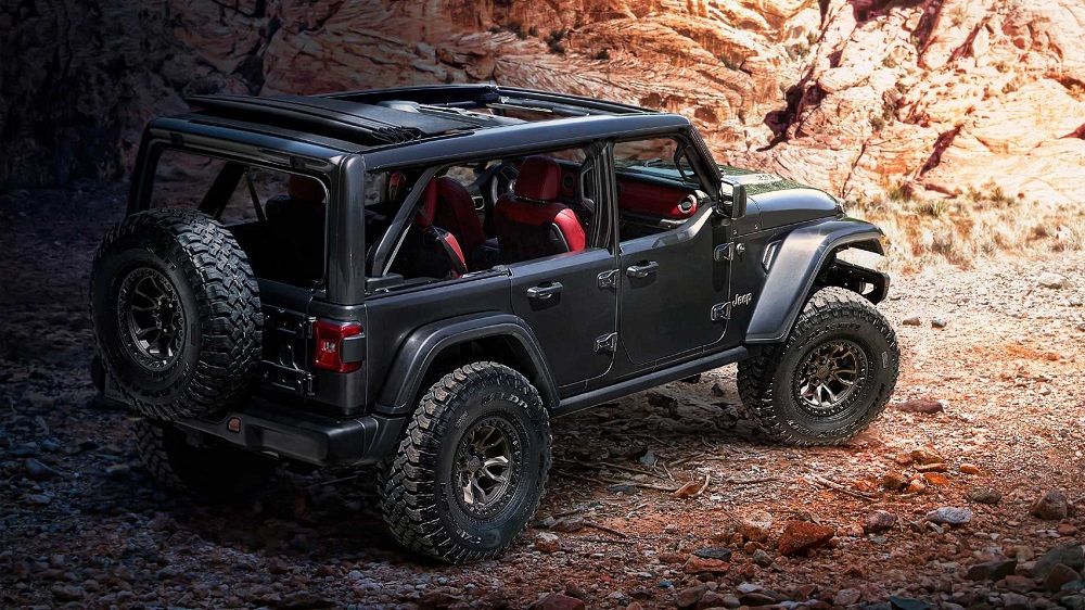 Detalj koji privlači najviše pažnje je svakako onaj ispod haube, gde se krije V8 agregat zapremine 6,4 litre, koji razvija 450 konjskih snaga i maksimalnih 610 Nm obrtnog momenta. To je značajno više od najmoćnijeg serijskog Wranglera, koji se može pohvaliti sa „samo“ 285 „grla“ i 353 Nm iz atmosferskog 3,6-litarskog benzinca. Snaga se prenosi na sva četiri točka preko osmostepene automatske transmisije, a ubrzanje iz mirovanja do 100 km/h iznosi ispod pet sekundi.