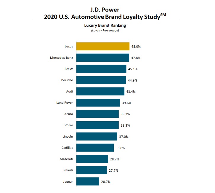 Istraživanje takođe pokazuje da vlasnici premijum vozila imaju manje doze poverenja u svoje ljubimce, u poređenju sa ranije spomenutim masovno proizvedenim četvorotočkašima. Na prvom mestu se našao Lexus sa 48% zadovoljnih vlasnika, ali ga je Mercedes pratio u stopu. Novinari kažu da je najveće iznenađenje relativno dobro šesto mesto Land Rovera, iako je britanski brend poznat po izuzetno lošoj pouzdanosti koja je uglavnom među najgrđim u automobilskoj industriji. Ali, kao što i ranije rekosmo, brojni su parametri koji „istraživanja“ ove kuće u većoj ili manjoj meri diskredituju.