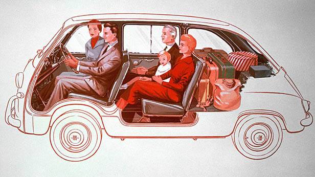 Tako je 1955. godine na tržište stigao Fiat 600, a njegov tvorac bio je čuveni dizajner Dante Đakoza. Fiat 600 karavan tj. Multipla kako mu je glasio naziv, bio je skromnih dimenzija sa dužinom od svega 3,5 metara ali je mogao da ponese četiri putnika. Otkud tako sićušne dimenzije?