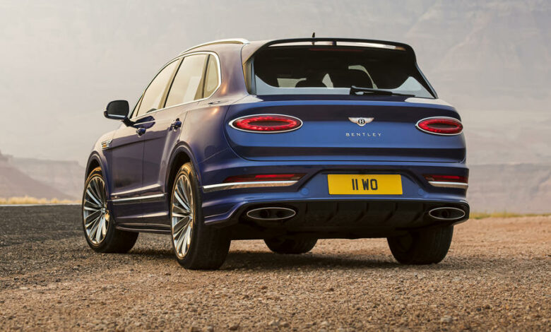 Bentayga Speed ima točkove od 22 cola, a od standardnog modela razlikuje ga i veći spojler na zadnjem delu vozila. Opcionalni paket Black Specification nudi hromirane ili karbonske delove u eksterijeru poput prednjeg splitera, bočnih „suknjica“, difuzora ali i točkova.