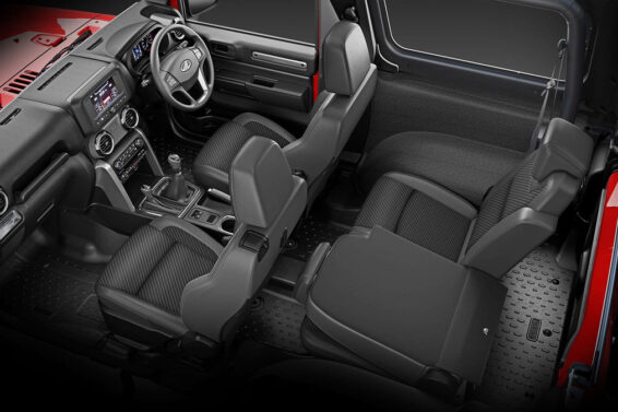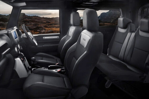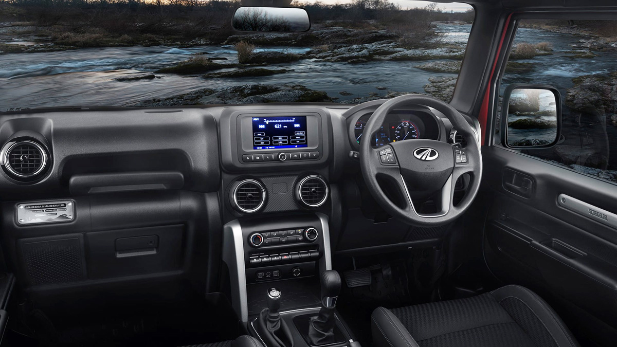 Na fotografijama iznad, možemo videti kako izgleda organizacija unutrašnjeg smeštaja u kabini skuplje verzije. Ona nosi oznaku Thar LX i nudi prevoz za do četiri čoveka, što podrazumeva „normalnu“ zadnju klupu Tu je i multimedijalni sistem s ekranom od sedam inča po dijagonali, uređajem za klimatizaciju i felnama izrađenim od lake legure. One poseduju prečnik od 18 cola.