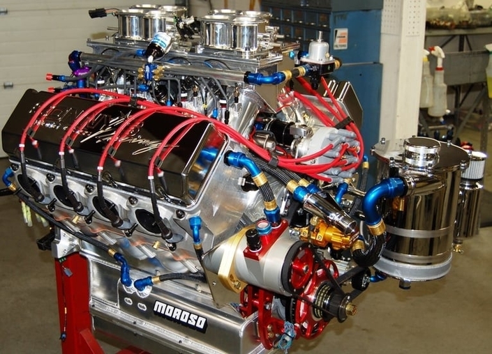 Četiri dvogrla karburatora su instalirana i oni su odgovorni za snabdevanje gorivom svih 1.005 kubnih inča, kolika zapremina krasi ovu zver. Da, dobro ste pročitali, kada se ovi inči konvertuju u kubne centimetre, onda dobijamo zaista monstruoznu „mašinu“ od 16,4 litra. Moglo bi se reći da je u pitanju ekvivalent dva motora iz hiperautomobila Bugatti Chiron, ali uz polovinu cilindara (posmatrano samo po broju istih).