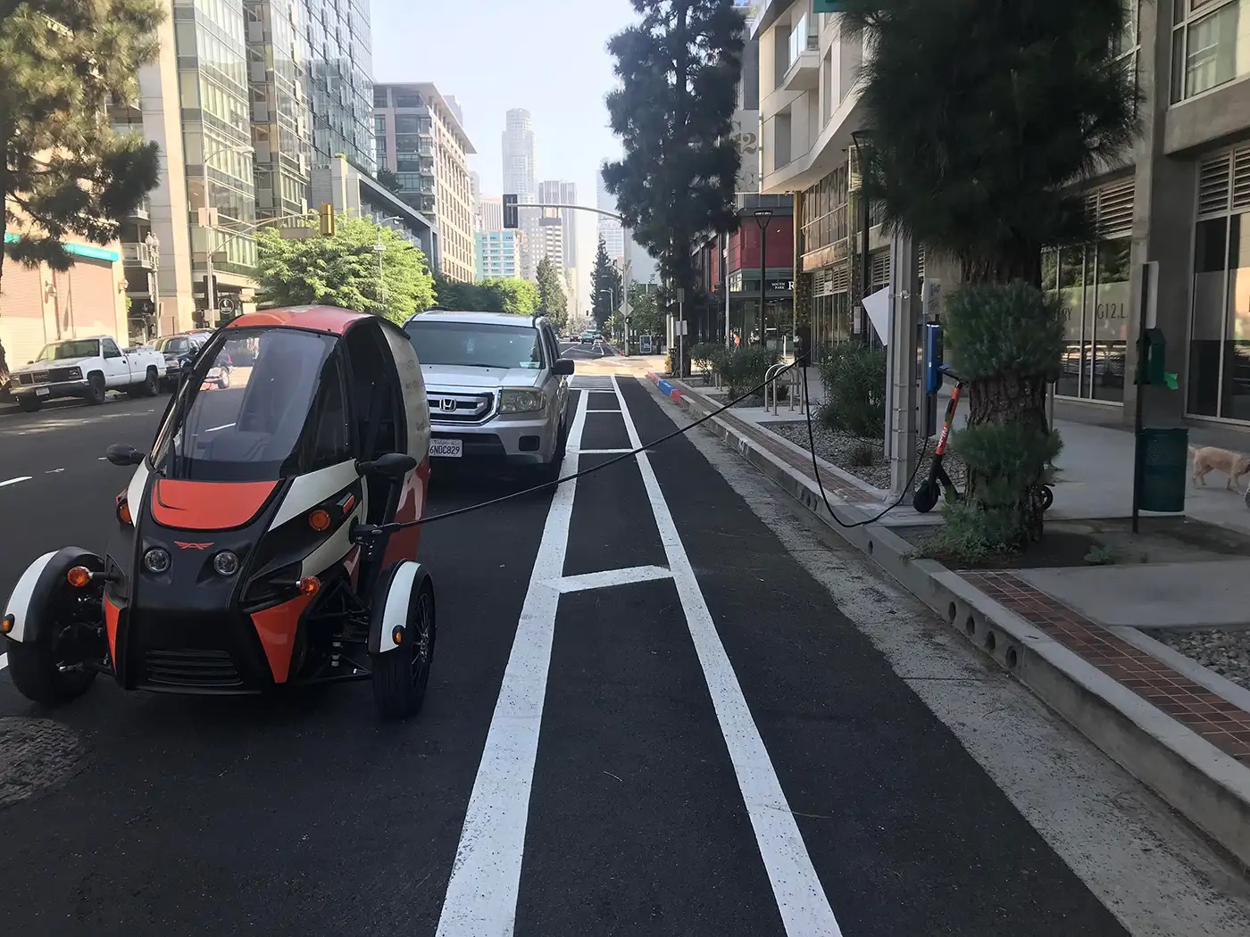 Zanimljiva priča stiže iz najvećeg grada u američkoj saveznoj državi Kaliforniji, to jest iz Los Anđelesa, gde su reporterske kamere zabeležile jednu čudnu situaciju. Naime, slika pokazuje električni automobil Arcimoto FUV parkiran na ulici, koji se pritom nalazi priključen na punjač. Možda takva situacija i nije mnogo čudna na prvi pogled, sve dok ne vidimo da je kabl između automobila i punjača u potpunosti blokirao stazu za bicikliste i na taj način ugrozio vozače na dva točka.