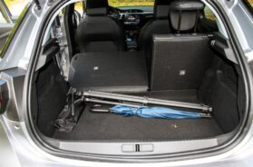 Električna automatska ručna kočnica zauzima manje mesta od klasične, no ovde nije predviđen selektor za izbor programa (Sport, Normal i Eco), kao kod prethodno vožene. Nakon prednjih pređimo na zadnja sedista, gde je raspoloživ prostor posve prosečan. Opet ista priča kao kod Peugeota, vrata pozadi su mala, kraća za nekih desetak nego li kod Renaulta Clio, što komplikuje ulazak/izlazak korpuletnim osobama. Zapremina prtljažnika je identična kao kod 208, tek nešto više od 300 litara, što je osetno manje od jednog VW Polo (350 lit).
