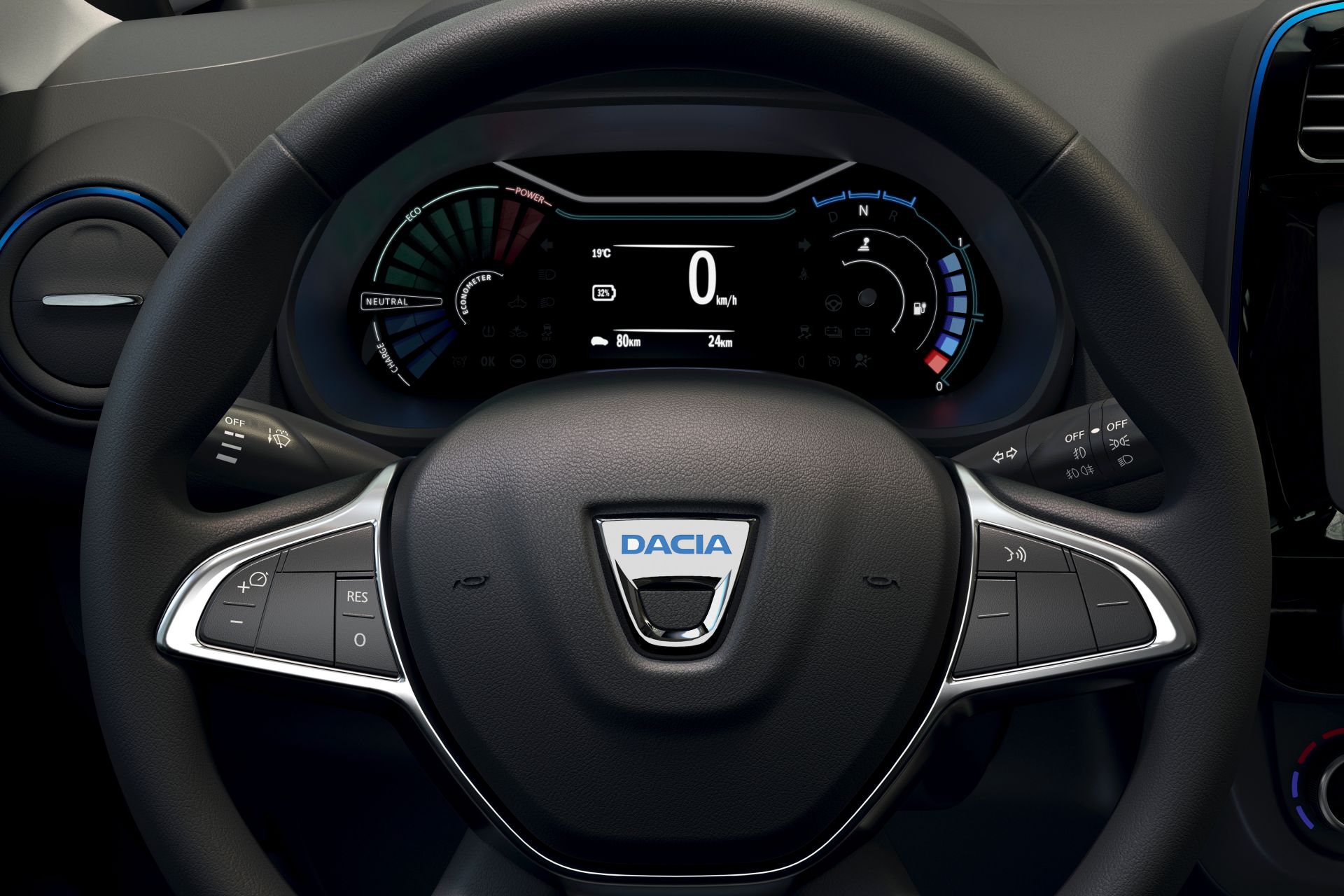 U kabini je jasna niskobudžetna filozofija, te ceo enterijer izgleda poprilično lakonski. Osim upravljača iz Dacije, ostatak bi se reklo da je stigao direktno od donora iz Renaulta. Na spisku standardne opreme nalazi se servo volan, daljinsko zaključavanje, električno kontrolisani prozori, kao i displej od 3,5 inča smešten u instrumentalnu tablu.