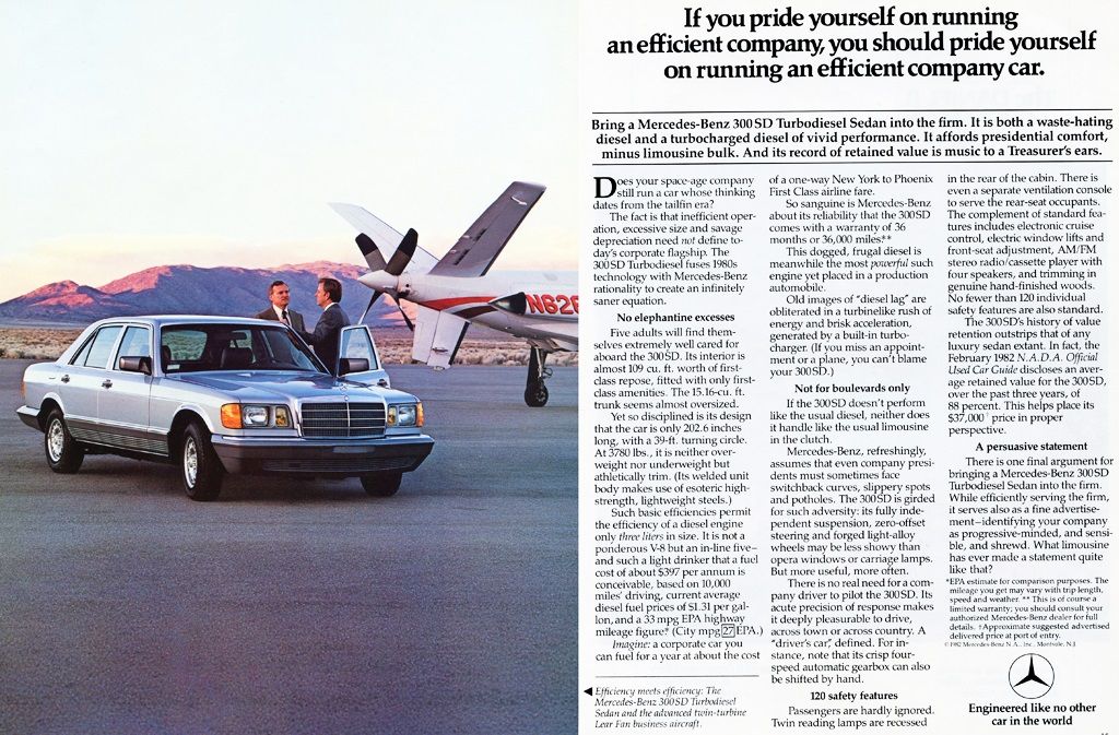 Prema fabričkim brojevima, ubrzanje iz mirovanja do 100 km/h je iznosilo 15,2 sekunde uz maksimalnu brzinu od 175 km/h. Verovatno se pitate „šta će dizel u Americi“, ali u vreme kada su dve naftne krize još uvek bile „Jenkijima“ na umu (jedna iz 1974. godine, a druga pet godina kasnije) odjednom je bilo moguće dobiti premijum limuzinu tešku preko 1,6 tona koja na autoputu troši manje od osam litara na 100 kilometara.