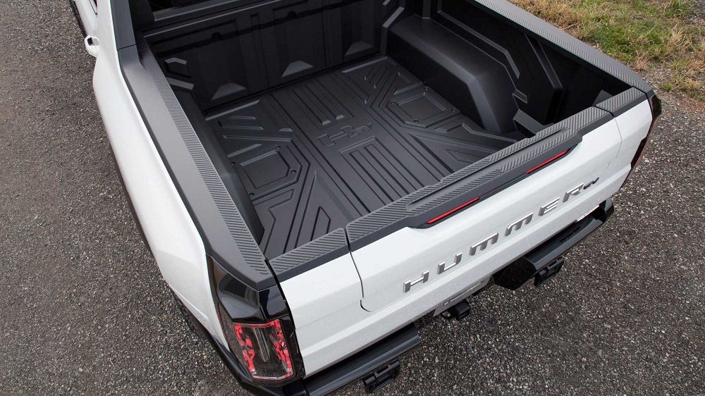 Mnogo veća pažnja je posvećena enterijeru. Ne samo što su materijali izuzetno visokog kvaliteta već je izbor standardne i opcione opreme pozavidan. Za početak, Hummer pruža glomazni 13,4-inčni monitor dok je ispred vozača jednako veliki 12,3-inčni monitor za prikaz informacija poput brzine kretanja, temperature i sličnih podataka.