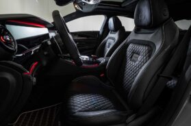 Kada zavirimo u unutrašnjost, momentalno zapažamo upotrebljenu crnu kožu i alkantaru, detalje koji su naglašeni nijansom koja korespondira s tonom karoserije, linije izrađene od plastike ojačane ugljeničnim vlaknima, metalne table na zadnjoj strani naslona sedišta, posebne patosnice, a tu je i oznaka na centralnoj konzoli koja obaveštava vozača i putnike da se voze u jednom od, ukupno samo deset izrađenih primeraka ovog modela. Upravo to je planirani kontignet od strane Brabusa.