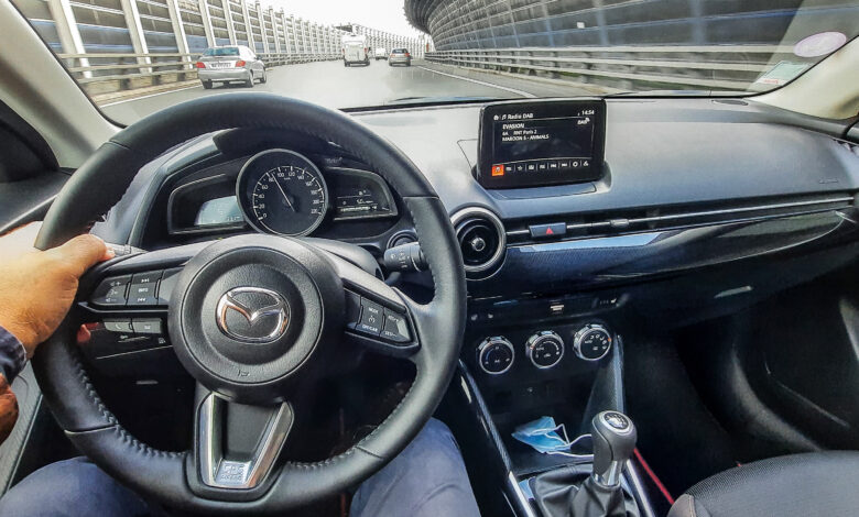 Dobra je ova mala Mazda, šta više veoma dobra! K’o velika. Uzevši u obzir da se radi o gradskom automobilu pohvalimo odmah mekoću komandi, prečnik okretanja i odličnu ergonomiju, sati provedeni u gužvama nisu mi teško pali. No, Mazde su isto tako automobili predviđeni da pruže izvesno zadovoljstvo u vožnji, iako mala ni „dvojka“ nije izuzetak.
