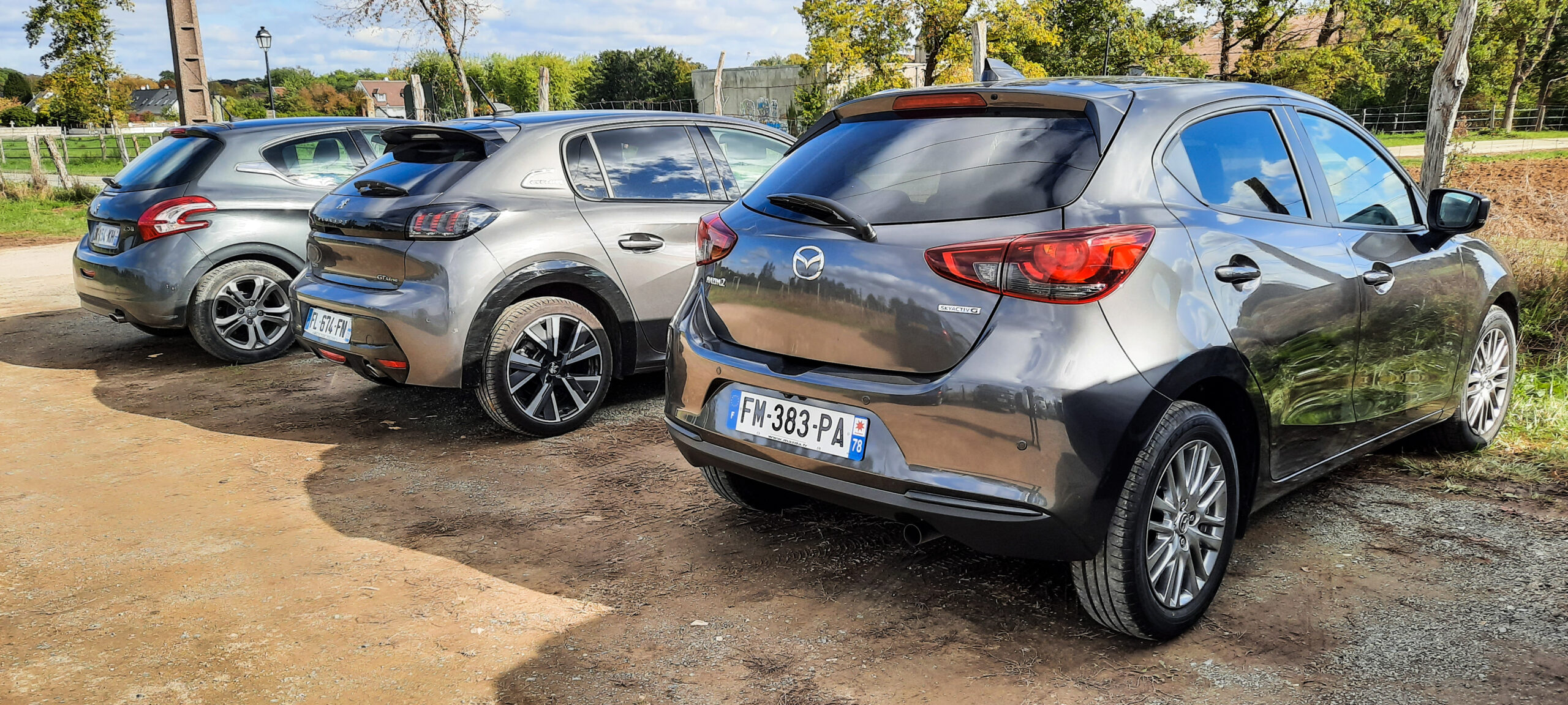 Iako u estetskom smislu imaju dosta zajedničkih tačaka, nova je znatno naprednija i veća (+14 cm), odnosno sa 4,06 metara dužine ušla je u standarde koje su nametnuli evropski mališani, tipa Clio, 208, Polo, Fiesta… Odmah po pojavljivanju uporedih je s tadašnjim bestselerom Cliom 4 (crvena na fotografijama), gde je dosta dobro prošla, štaviše na pojedinim poljima ga je i nadmašila (ergonomija, vozna dinamika, karakter motora…). No, to je bilo pre pet godina, novi Clio podigao je lestivicu veoma visoko, dok je Mazda 2 tek osvežena, i to u zrelim godinama.